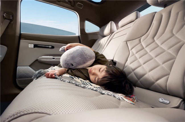 除了宽敞舒适的大空间,昊铂HT还配备了丰富的舒适性配置,全车搭载22扬声器、电动遮阳帘、Nappa真皮座椅及后排小桌板+腿蹬等。在家庭自驾出行时,电动遮阳帘能有效阻挡烈日直射,Nappa真皮座椅的透气性与支撑性让老人与儿童久坐不累,后排腿蹬还能让乘坐者放松休憩,22扬音响则能营造沉浸式影音体验,为全家出行增添更多幸福感。